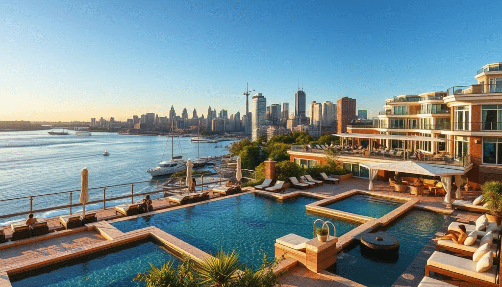 This luxury hotel is a top choice, with stylish rooms and suites. They have big windows with amazing city views. Guests enjoy a world-class spa and a rooftop pool.